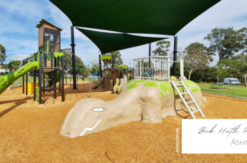 Sickle Park at Hope Island is home to two great playgrounds, with plenty of space to run and play, climb and explore! The larger, purple and red coloured playground features a huge mega slide, a spinning climbing ball, plus a smaller play structure with open slide. There is also a really great flying fox – perfect for the older kids but also fun for the little ones.