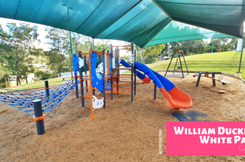 Parklake Park at Maudsland can’t be seen from the street, and so many people are surprised once they make their way down to it at how big the playground is! There are two playgrounds here, one for toddlers and one for bigger kids. The larger playground is where you’ll find one of the tallest straight drop slides I’ve seen on the Gold Coast! It’s quite a walk up to the top, but once you’re there the kids will love the trip to the bottom.