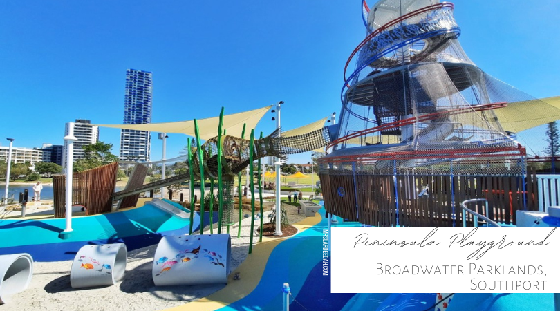 Everything about this playground epitomises a family day out on the Gold Coast! Gorgeous views over the broadwater, a calm swimming spot for the kids, shady picnic spots and an EPIC playground that has some of the most amazing pieces that I haven't seen before at any of our parks.