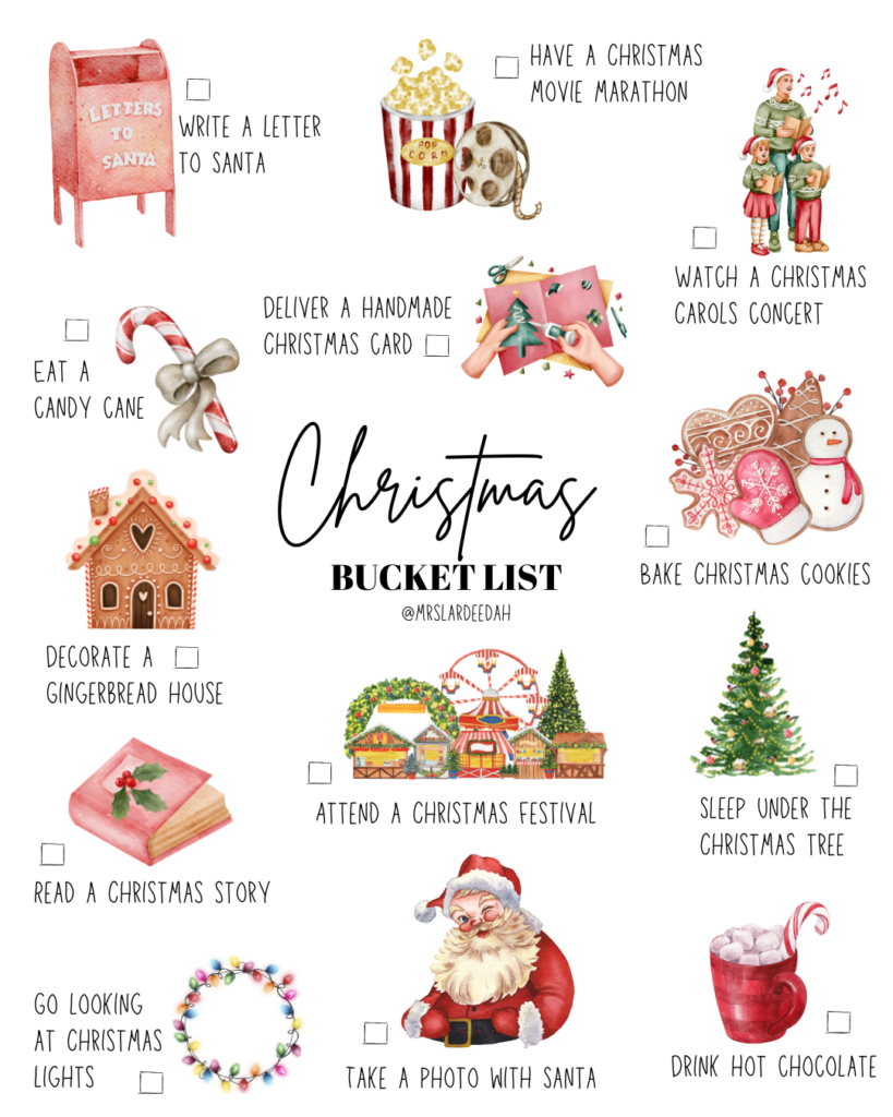 ‘Tis the season to be making special memories with your family! Whether it’s looking at Christmas lights, watching a Christmas Carols concert, or just enjoying a Christmas movie marathon, this Christmas Bucket List should help you to spend some quality time with your kids this festive season!
