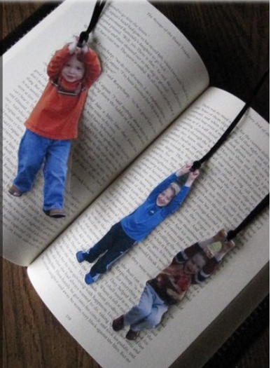 If you have a reader in the family, try this cute bookmark idea! Take a photo of your child with their hands clasped together above their head. Print it out, laminate it (cheats laminate – use clear packing tape!) and cut around the body. Pop a hole in at their hands and tie a bit of string or leather strap and your present is done.