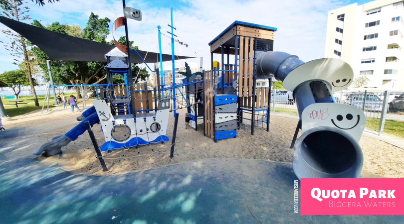 Quota Park in Biggera Waters is a fabulous nautical themed playground with plenty of imaginative play elements. Catering for a variety of ages, there is so much to do at this playground! It's a also a great spot for a family walk or bike ride, doing a loop between Quota Park and Harley Park!
