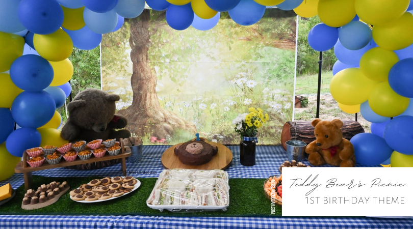 This was such a fun party to plan, and the teddy bear’s picnic first birthday theme is perfect for celebrating the big ONE! With most children this age still crawling, toys on picnic blankets and cuddly teddy bears are perfect! This makes for a great morning or afternoon tea party, and the colours can be easily adapted to suit your taste.